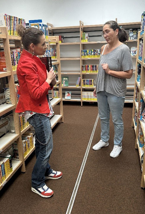 Nachdem sich unser Clubvorstand einstimmig für eine Spende von 1.000 € ausgesprochen hatte, allerdings mit dem Hinweis, dass insbesondere Werke von Autorinnen und/oder mit starken Protagonistinnen angeschafft werden sollten, fanden sich unsere Präsidentin und Vizepräsidentin am Freitag, den 21.03.2025 inmitten von Jugendliteratur, gleich in mehreren Sprachen wie Englisch und Japanisch, wieder und wurden von Frau Hopp und Vertretern des Schulzentrums und des Fördervereins freundlich mit Kaffee und Gebäck empfangen.